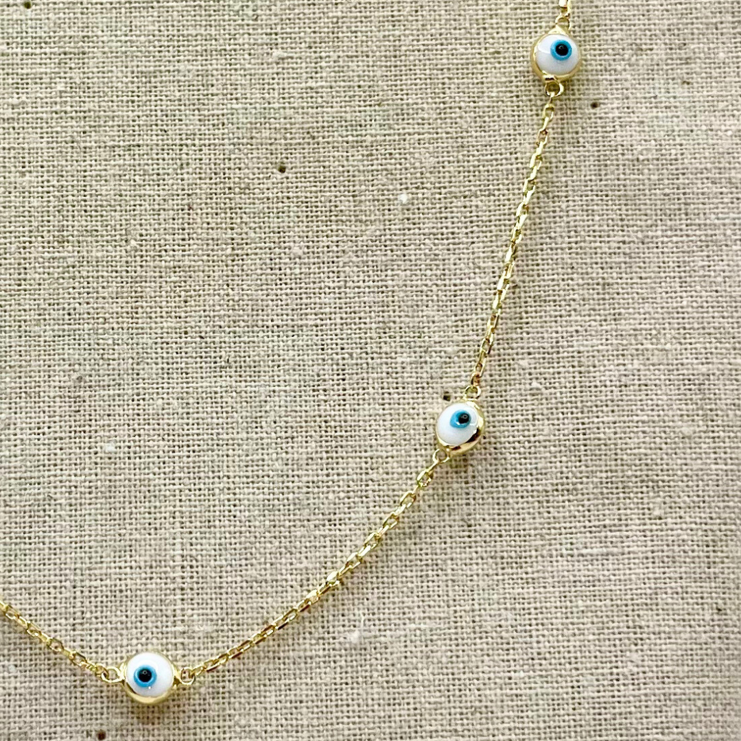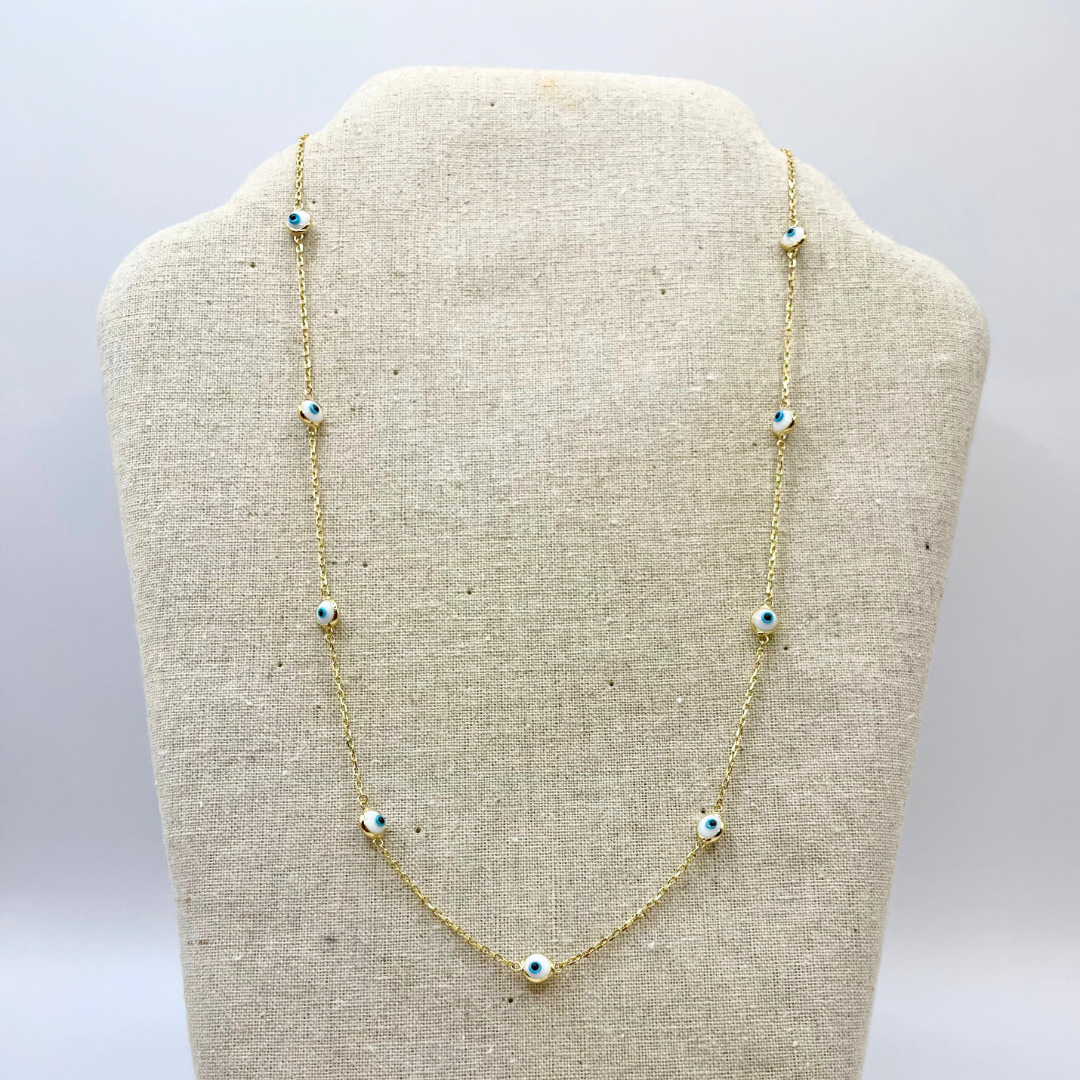 Evil Eye Gold Necklace (White)